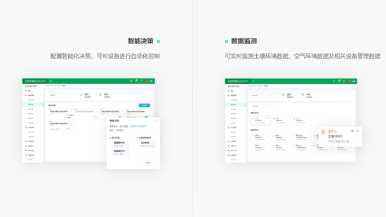 2020年公司專注于智慧農(nóng)業(yè)關(guān)鍵技術(shù)研發(fā),積極探索重慶智慧農(nóng)業(yè)發(fā)展新方向。先后服務(wù)酉陽、石柱、南川、北碚等區(qū)域客戶智慧農(nóng)業(yè)云平臺(tái)建設(shè),受到業(yè)主一致好評(píng)。公司始終堅(jiān)持“產(chǎn)品+數(shù)據(jù)+技術(shù)+服務(wù)”的發(fā)展模式,致力于智慧農(nóng)業(yè)整體解決方案研發(fā)和服務(wù)。通過數(shù)據(jù)和技術(shù)雙輪驅(qū)動(dòng),實(shí)現(xiàn)農(nóng)業(yè)規(guī)模化、精準(zhǔn)化、智能化。